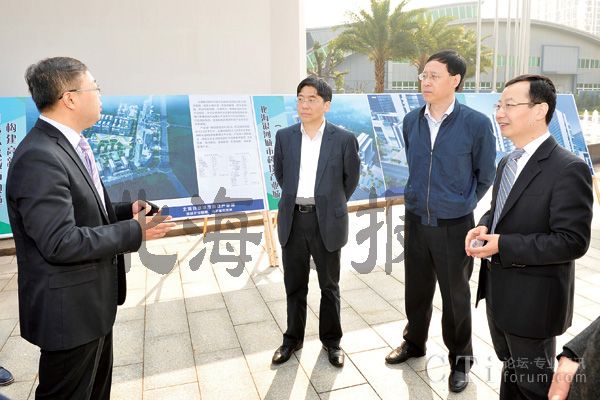 圖片說明:3月26日,市委書記王可、市長林山青在出席北海高新區重大項目開工開業儀式時,認真了解園區服務及企業發展情況。