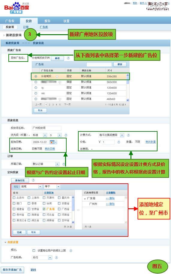 3) 通過導(dǎo)航“投放”→“投放項(xiàng)”→“新建投放項(xiàng)”,進(jìn)入圖五所示頁面,填寫廣州投放項(xiàng)相關(guān)信息。