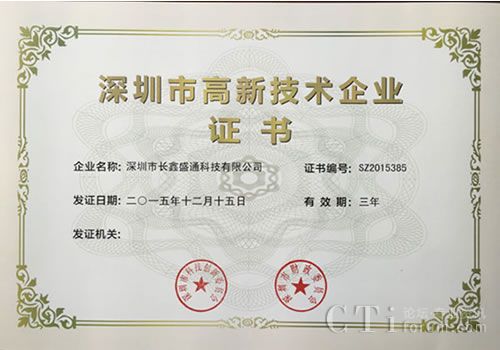 經(jīng)過不懈努力,長鑫順利通過了深圳市高新技術企業(yè)認證,拿到了證書,即將走上人生的巔峰!