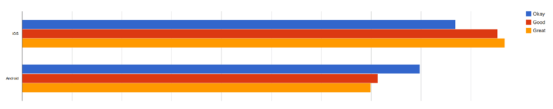 iOS 稍微比 Android 熱門一點,而且越好的公司越多采用 iOS,WindowsMobile 由于體量太小(小 30 倍到 50 倍),所以連圖都不上了。