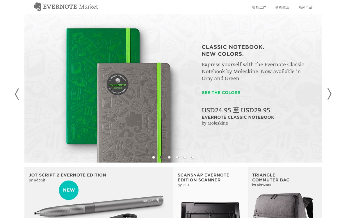 兩者前后推出了 Evernote Market 和豆瓣市集。 比較明顯的區(qū)別是 Evernote Market 上主打與品牌合作的商品(比如 Moleskine 合作的 Evernote 筆記本)和自己原創(chuàng)的設(shè)計(jì)(比如那個(gè)電腦托架)。豆瓣市集則更像個(gè)文藝的淘寶。