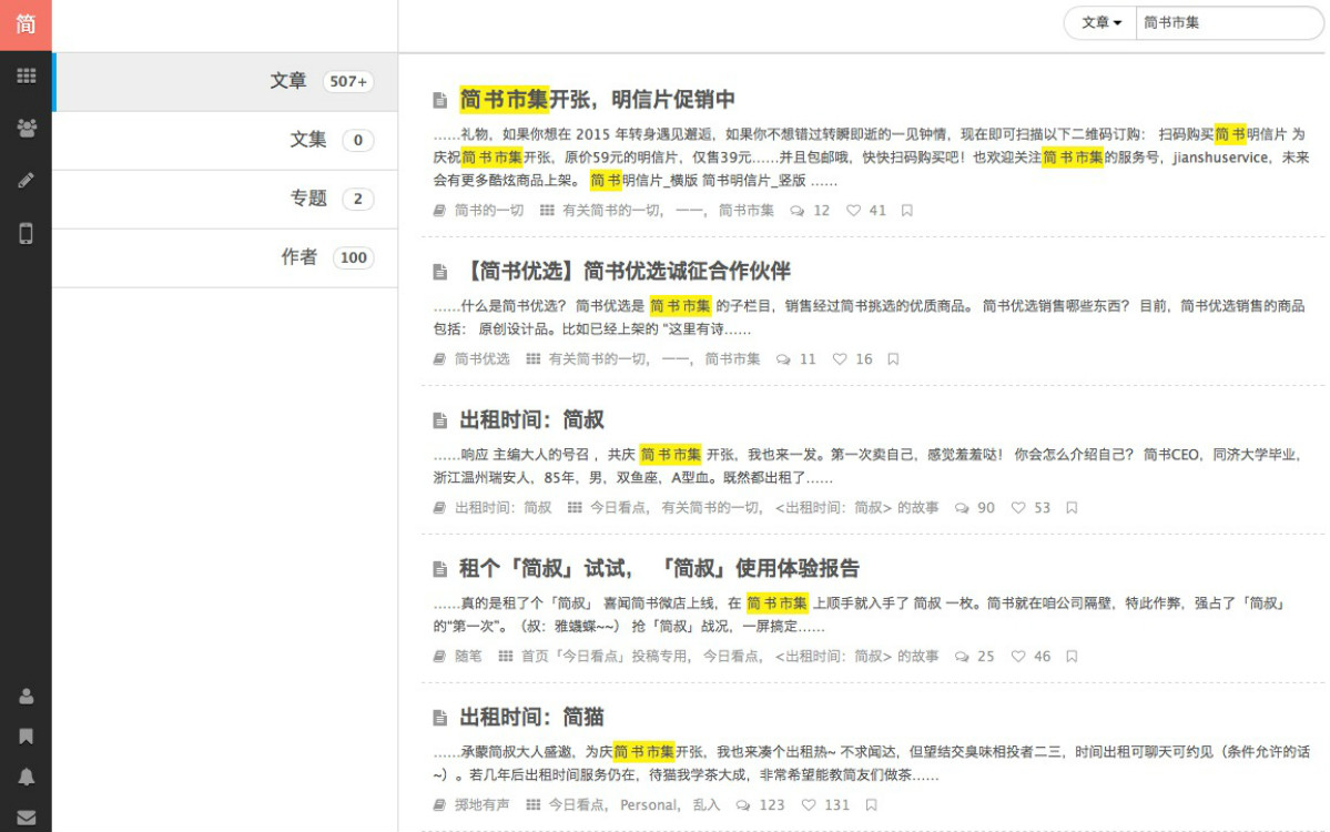 MALESKINE 開發(fā)之初,他們本想把這款支持 Markdown 的筆記本推出到海外市場,不過外國人對(duì)這款 Made In China 的產(chǎn)品并不買賬,因此團(tuán)隊(duì)很快收下心將用戶定位在國內(nèi),而“簡書”這一名稱也是在那時(shí)確定下來。隨后的一年半時(shí)間里,簡書一直以“找回文字的力量”為產(chǎn)品核心理念,圍繞著開發(fā)出簡書社、專題、簡信等產(chǎn)品和功能。
