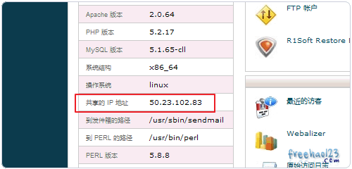 3、域名綁定到了空間,還得做A記錄將該域名指向該空間上。先找到老鷹主機的IP地址。