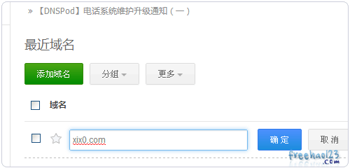 5、我這里使用的是國內第三方免費DNS服務:DNSPOD。先在DNSPOD中添加域名。