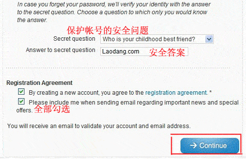 5、點(diǎn)擊“Continue”,完成Mydomain.com 的新用戶的注冊(cè)。