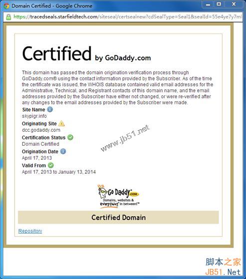 在國內做域名備案需要域名證書,無奈之下,老外樂得數錢啊。其實Godaddy提供的認證,只是為了給用戶展示該域名是Godaddy托管的正規域名,目的是讓用戶放心瀏覽,其實可有無。