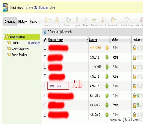 4、這時比如我們要解析:56NET 點擊該域名,如圖4: