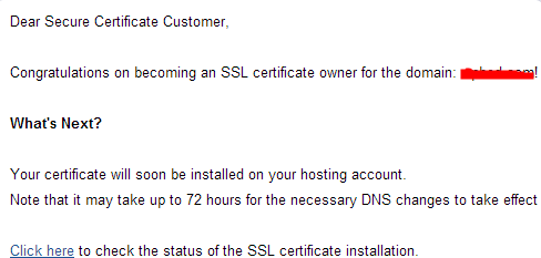 11.SSL證書安裝成功后,會收到GoDaddy官方發來的郵件提醒。