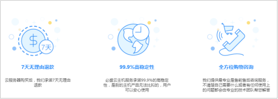 對于不熟知的主機產(chǎn)品或第一次建站的用戶來說,在選擇時大都會猶豫,到底這款主機產(chǎn)品適不適合自己。如果商家能夠為站長提供有實效限制的退款保證,基本就可以消除用戶的顧慮,當然這也是商家對自己產(chǎn)品性能等方面自信的表現(xiàn)。像必盛互聯(lián)香港主機就提供7天的退款保證。