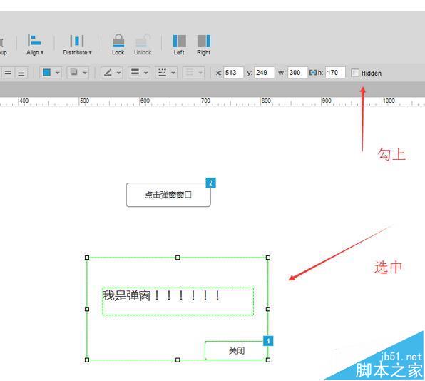 7、最后不要忘了,把彈窗設置為隱藏