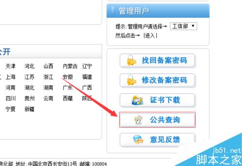 2、進(jìn)入到備案國(guó)家的信息部的網(wǎng)站,在網(wǎng)站的右下角的位置中,管理用戶(hù)選項(xiàng),然后進(jìn)行點(diǎn)擊“公共查詢(xún)”的選項(xiàng)。