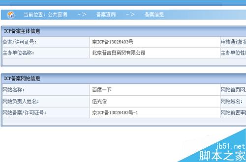 6、這樣就可以查看到具體的備案的信息,即網(wǎng)負(fù)責(zé)人的名字信息,公司的名稱(chēng)等更多的信息。