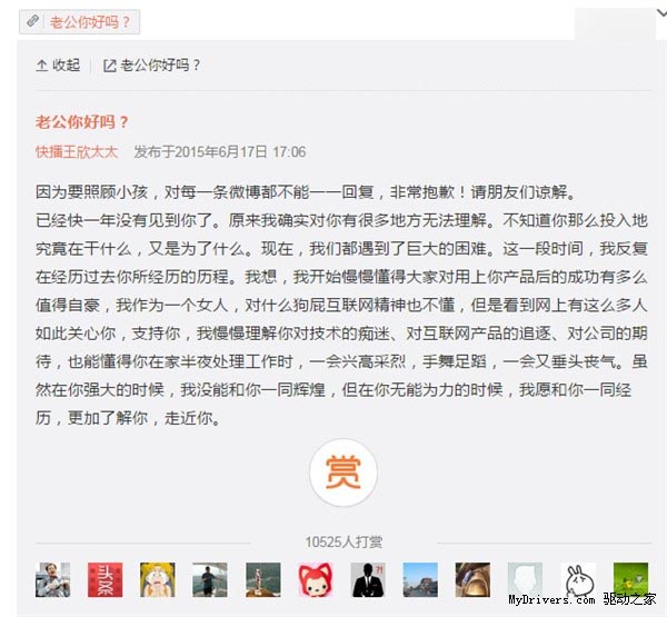 巨人網(wǎng)絡(luò)通訊聲明:本文標(biāo)題《快播CEO王欣太太獲萬人打賞:要捐給有夢想的人》,本文關(guān)鍵詞 快播,CEO,王欣,太太,獲,萬人,;如發(fā)現(xiàn)本文內(nèi)容存在版權(quán)問題,煩請?zhí)峁┫嚓P(guān)信息告之我們,我們將及時(shí)溝通與處理。本站內(nèi)容系統(tǒng)采集于網(wǎng)絡(luò),涉及言論、版權(quán)與本站無關(guān)。
