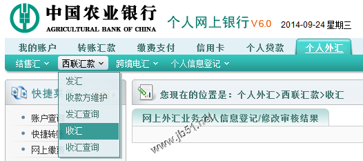 依次打開【個人外匯】->【西聯(lián)匯款】->【收匯】