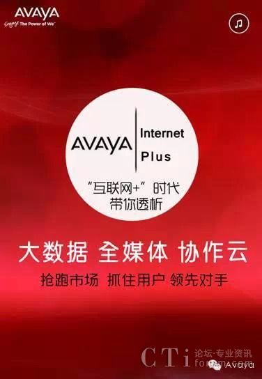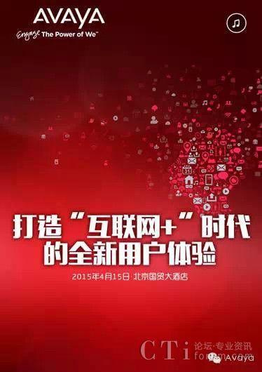 互聯(lián)網(wǎng)+時代已經(jīng)到來!中國政府提出“互聯(lián)網(wǎng)+”行動計劃,推動移動互聯(lián)網(wǎng)、云計算、大數(shù)據(jù)、物聯(lián)網(wǎng)等與現(xiàn)代制造業(yè)結(jié)合,促進電子商務、工業(yè)互聯(lián)網(wǎng)和互聯(lián)網(wǎng)金融的發(fā)展。4月15日,Avaya將在北京國貿(mào)大酒店舉行會議,帶你全面解析“互聯(lián)網(wǎng)+”時代,從容應對這一挑戰(zhàn)!