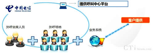 由企業客戶提供熟悉業務的專業的服務人員,電信提供坐席職場、平臺系統、坐席設備等一系列外呼所需資源。