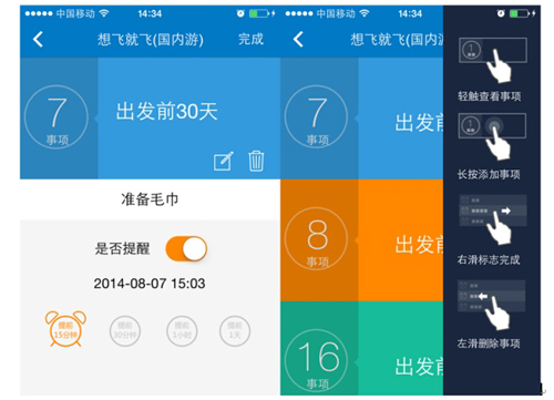 現(xiàn)在市面上有非常的事務(wù)管理工具,旅行清單功能就是集成在手機(jī)客戶端中的輕功能。每一位旅客出行都需要進(jìn)行各種的準(zhǔn)備工作,如帶毛巾、洗漱用品、暈車藥等等,但是每次出行到了機(jī)場(chǎng)了卻發(fā)現(xiàn)這個(gè)忘記了,那個(gè)忘記了!這樣的事情層出不窮。