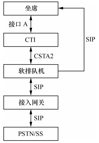 圖7-6 軟排隊機與CTI、坐席、接入網關之間的接口