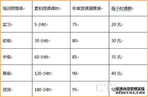 按課時支付課酬很簡單,例如:每一堂課(1.5小時)50元,根據授課滿意度結果折算,滿意度高于等于90分拿滿額,滿意度在80-90分拿30元,低于80分無課酬。
