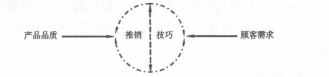 推銷員配合顧客觀念是克士格(BarryJ.Hersker)在1970年所提出來的,他認為有效推銷技巧的表現,須使推銷員能將其獨特商品配合準顧客的需要,將產品品質與觀察到的顧客需求作為有效推銷表現的要素。推銷員配合顧客觀念可用圖3-1來表示。