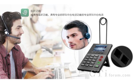 支持標準RJ9接口耳機以及Plantronice EHS無線耳機,同時具有呼叫中心監聽的功能