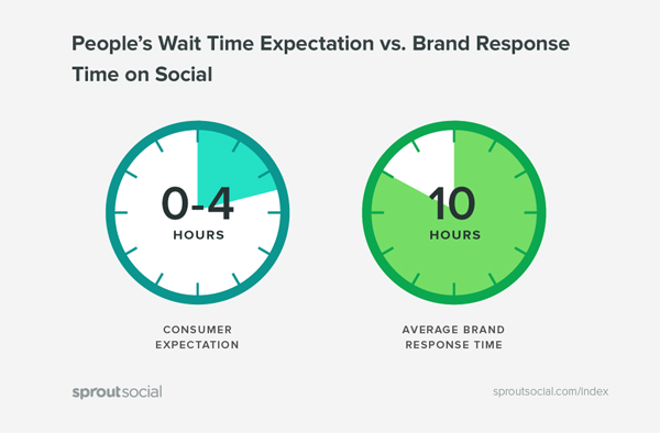 這一點非常重要,因為消費者期望品牌能夠比保證的要更快回應。根據SproutSocial在2016的調查顯示,客戶期待在0-4小時之間收到回應,但是,企業通常需要10個小時才能做出回應。智能客服機器人可幫助您明顯縮短平均回應時間,使您更接近客戶的期望。