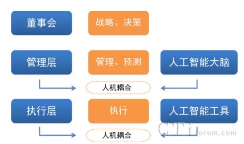 在引進人工智能之前,企業(yè)的治理金字塔架構(gòu)是決策、管理與執(zhí)行,管理層是公司的中間層,起著承上啟下的作用。向下傳遞決策者的戰(zhàn)略規(guī)劃,并細(xì)化可執(zhí)行的目標(biāo),引導(dǎo)執(zhí)行者完成關(guān)鍵的結(jié)果;向上提供決策信息,補充決策依據(jù)。