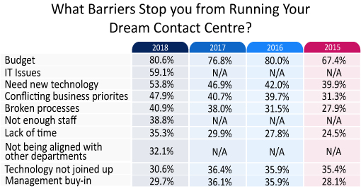 1、預(yù)算不足(76%的聯(lián)絡(luò)中心有此問題)