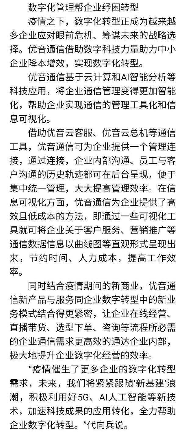 巨人網(wǎng)絡(luò)通訊聲明:本文標(biāo)題《兩會特刊《中國產(chǎn)經(jīng)新聞》專訪優(yōu)音通信總工程師代向兵》,本文關(guān)鍵詞 兩會,特刊,中國產(chǎn)經(jīng)新聞,;如發(fā)現(xiàn)本文內(nèi)容存在版權(quán)問題,煩請?zhí)峁┫嚓P(guān)信息告之我們,我們將及時溝通與處理。本站內(nèi)容系統(tǒng)采集于網(wǎng)絡(luò),涉及言論、版權(quán)與本站無關(guān)。