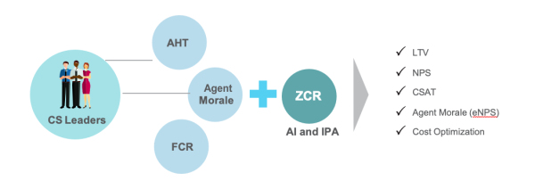 ZCR是在沒有座席交互的情況下解決案例的概念。ZCR是智能組織利用AI可以利用的核心AI指標。通過利用AI技術減少企業的人工處理量,無需座席交互,就可以從成本中心轉變為價值中心。
