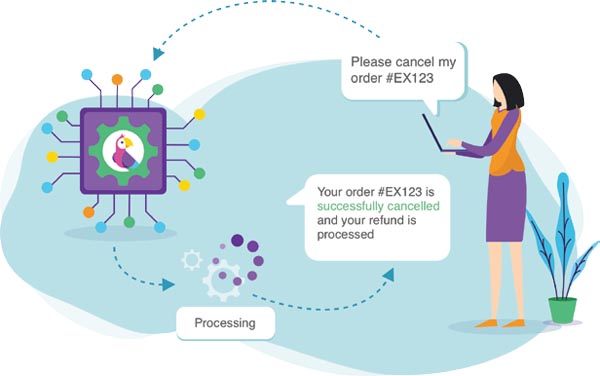 AI的認知方面用于理解觸發流程執行的意圖,以及在流程的不同階段上下文提供模板化響應。這種類型的自動化適用于多種客戶服務方案,如退款,保修,交換,訂單處理,跟蹤,發票,付款更新,庫存查詢等。