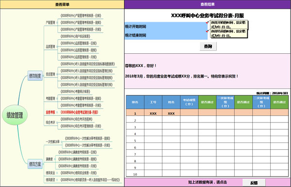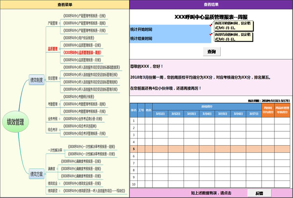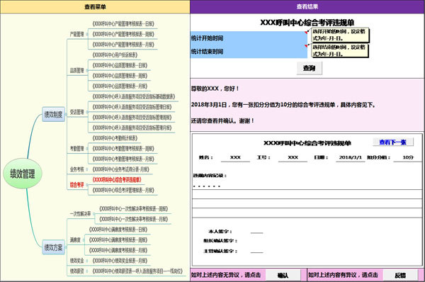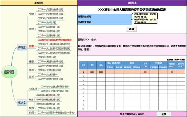 C. 對于一線客服人員來講,就是可以查看績效考核相關數據,并可對異常數據進行反饋操作的功能模塊。