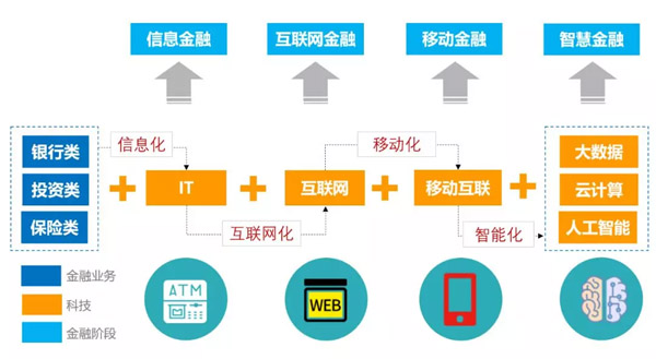 金融科技也是一個循序漸進的過程,第一階段是銀行業信息化,以前銀行是沒有銀行卡,只有存折,后來有了自動柜員機,可以辦理一些自助服務,2002年把工行數據做了一個大集中,在那以后通存業務普及起來。這一階段稱為銀行信息化,通過計算機系統解決處理銀行的核心業務。