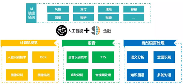 在現階段進入了智慧金融時代,源于AI技術的不斷成熟,包括計算機視覺,可代替人眼睛進行識別。語音,ASR代表人耳朵能力,TTS代表嘴巴的能力。最最難的是NLP,AI技術皇冠上的明珠,相當于人的大腦。這些技術的不斷成熟讓人工智能在金融行業落地場景越來越豐富,諸如智能風控、智能營銷、智能理賠、智能客服等等,只有技術和場景結合起來,走向商業,才能算真正落地了。