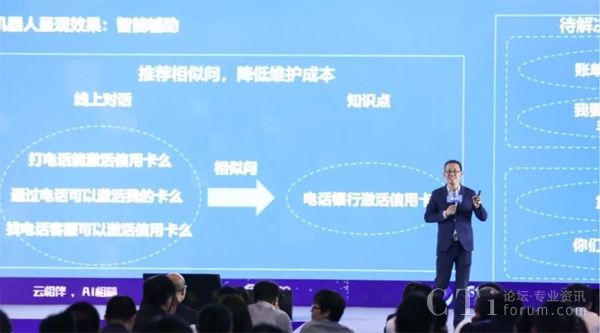 首先是系統(tǒng)完成集成后的效果,我們基于圖譜標(biāo)簽的上下文關(guān)聯(lián)的功能實(shí)現(xiàn)了多輪會(huì)話,使它能夠更接近于我們正常的溝通方式。比如當(dāng)用戶首先咨詢跟信用卡相關(guān)的問(wèn)題,當(dāng)他再次咨詢手機(jī)銀行的時(shí)候,我們會(huì)把問(wèn)題圈定在手機(jī)銀行申請(qǐng)信用卡的環(huán)境里面對(duì)他進(jìn)行識(shí)別。當(dāng)用戶再問(wèn)起來(lái)激活的時(shí)候,機(jī)器人會(huì)理解為手機(jī)銀行信用卡激活的問(wèn)題。