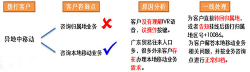 經過外呼調研和客戶的錄音分析,客戶咨詢歸屬地業務的原因主要為沒有理解IVR語音從而導致誤操作引發的,具體可以見下圖。