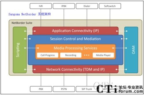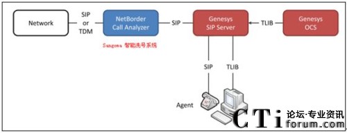 呼叫中心的蓬勃發展帶動了呼叫中心廠家投入巨資開發呼叫中心最核心的功能,例如拓展呼叫中心的接入,座席的管理,洗號系統。除了支持Asterisk,Freeswitch平臺的高并發A116 16E1做為高并發呼叫中心以外,Sangoma早在2004 年就開始和世界知名呼叫中心廠家Genesys 合作,開發了呼叫中心的洗號系統,遠端座席管理,PSTN 接入等強大的工具,從而提高了大型呼叫中心的接通率和座席管理的靈活性。Sangoma 通過genesys 兼容性測試,完全兼容Genesys 呼叫中心平臺。NetBorder 系統架構如下: