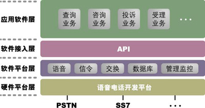 2.系統建設周期較短,功能擴展性強——語音卡方案的主要功能都由軟件編程實現。國內一些語音卡方面的軟件開發商已經積累了語音接續、排隊分發、撥內外線、電話會議、文本傳真轉換、文本語音轉換等功能模塊,通過簡單組合10種符合國際規范的模塊,就可以開發出滿足用戶需求的各種應用系統。基于同樣原因,系統開發新功能也較為容易。