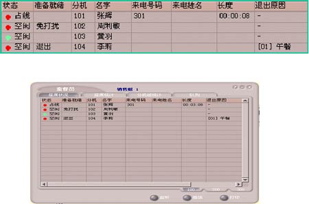 和創科技公司向浙江發展城市臺州市的銀座城市信用社建議的銀行客戶服務呼叫中心(Call Center)宗旨是先進、成熟且有充分擴充余地的方案,為此在用戶已有普通電話銀行功能的基礎上,根據實際情況和實際需求,設計方案,并能適合銀行長遠的業務策略和管理需求,在同類產品中具有領先地位,系統特色簡括:擴充性、先進性。 座席狀態統計界面: