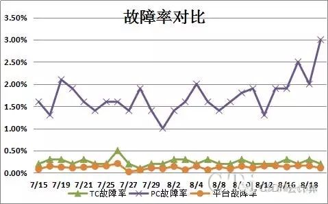 同時,云桌面平臺故障率、瘦客戶端故障率也遠低于PC故障率。下圖是攜程運維部門的故障率統計圖。