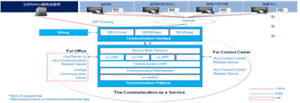 CCCS 的核心在亍CaaS(Communication as a Service) 平臺.nEXUS 采用SIP、HTTP、RIO、Open Source 等的國際標準技術構建開放型平臺。并且通過Communication API 的公開,與其他通信解決方案易于對接,將來服務的應用和擴展方面具有很突出的優勢。