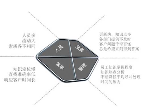 上述問題是目前呼叫中心管理者必須面對和待解決的問題,從某種角度來講,呼叫中心面臨的壓力和挑戰可以歸結為一點盡快的向用戶準確提供他們需要的信息,這正是知識管理的目標所在。