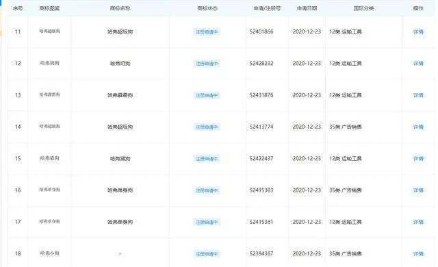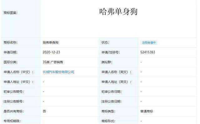 近日,長城汽車因大量注冊新商標一事引起大量的關注。據車叔了解,在長城汽車這次注冊的商標中,包括了“哈弗單身狗”“哈弗霹靂狗”“哈弗獵狗”“哈弗超級狗”等商標,國際分類這一欄涉及到運輸工具以及廣告銷售,商標狀態均為“商標申請中”。