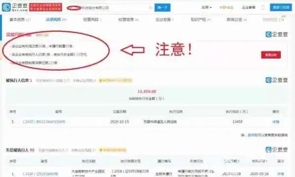 其二,通過“企查查”(官方備案企業征信機構)查詢,該公司已被法院列為失信被執行企業,其中涉及多個法院的判決,因未找到可供執行的財產全部未履行。