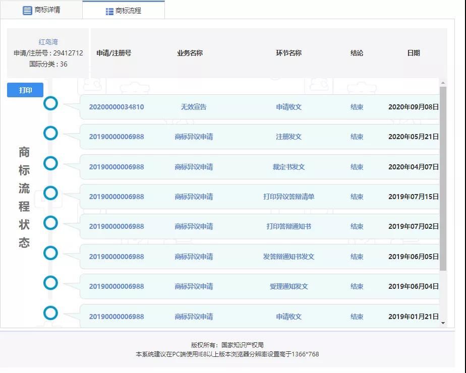 在查詢商標流程時,發現這一商標在申請注冊過程中也出現過異議申請,而且該商標的無效宣告在2020年9月8日已結束了申請收文環節。