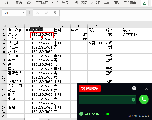 2、利用沸思電銷外呼助手.exe,可以實(shí)現(xiàn)屏幕取號(hào),一鍵快撥。
